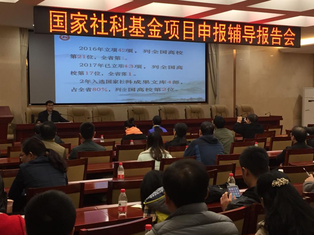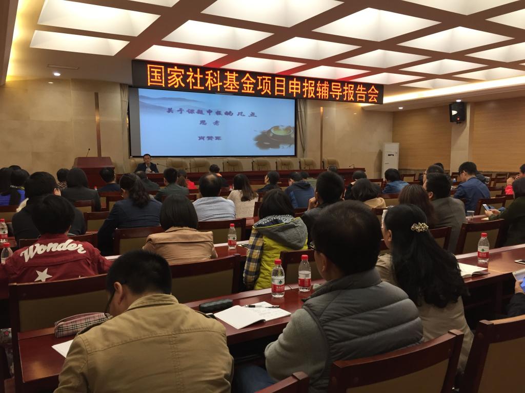 近百位预备申报2018年度国家社科基金项目的教师参加报告会。