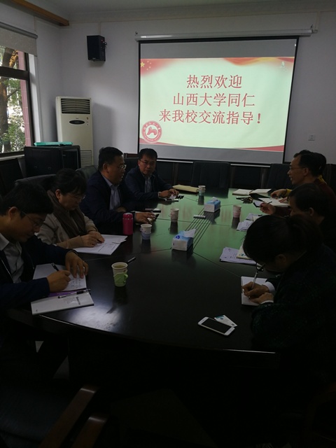 10月24日,山西大学社会科学处处长侯怀银教授一行来我处考察交流,副处长王铁钢在四楼会议室热情接待来访客人。