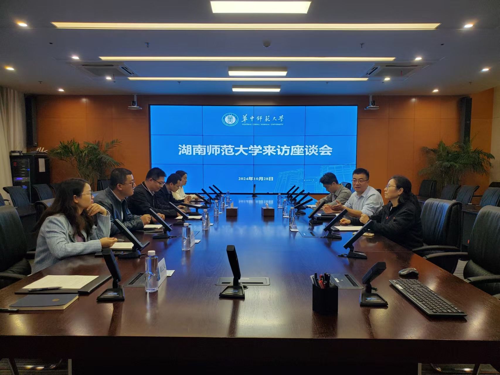 社科处一行首先参观了华中师范大学人工智能教育学部,深入考察了学部在教育大数据与人工智能方面取得的成就,学习华中师范大学在教育数字化领域的教学与科研双向赋能的探索与实践,并进行座谈交流。