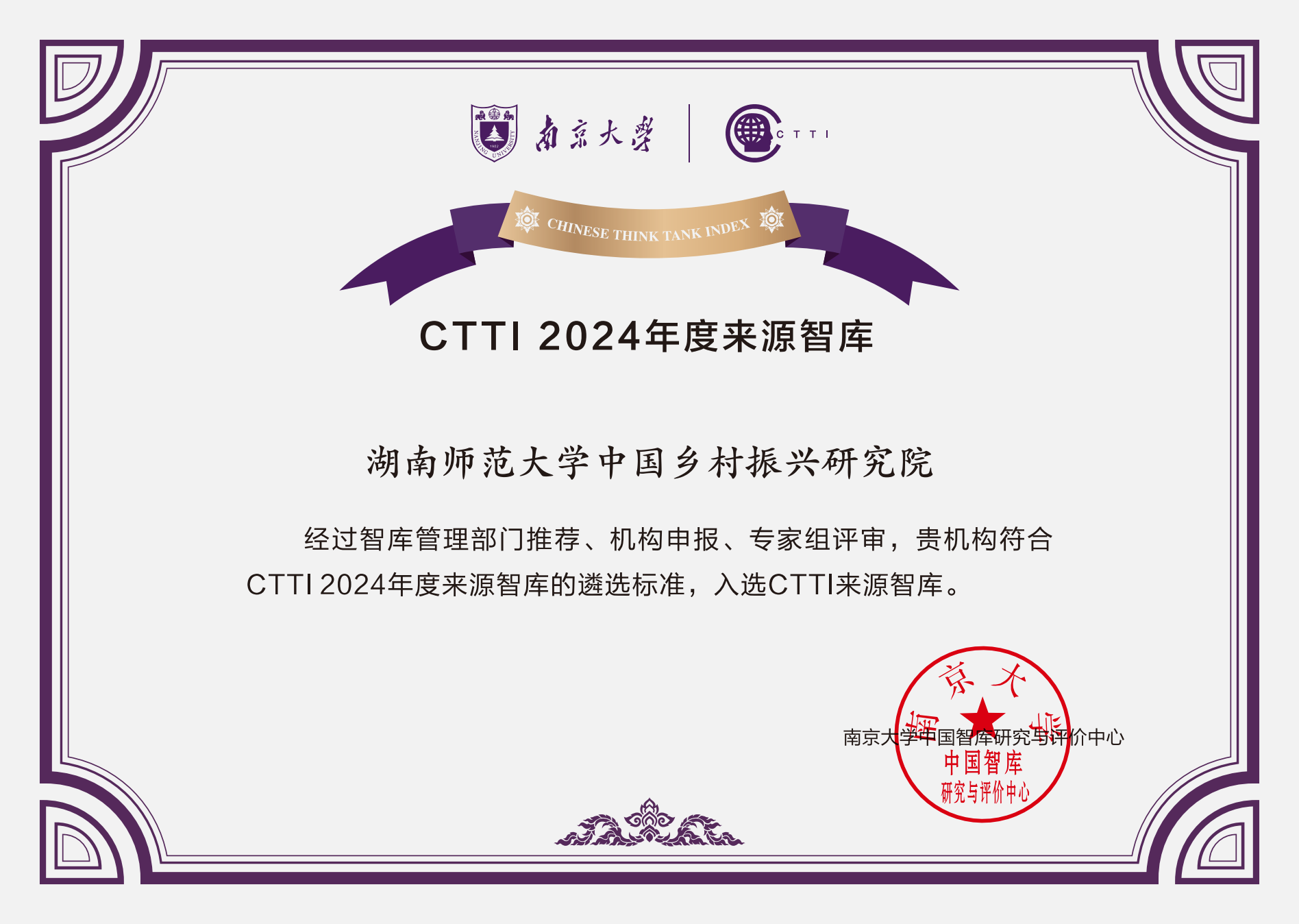 论坛发布了中国智库索引(CTTI)2024年度增补来源智库名单、2024年度智库研究优秀成果名单。湖南师范大学中国乡村振兴研究院被遴选为中国智库索引CTTI新增来源智库,推荐的《湖南巩固拓展脱贫攻坚成果与乡村振兴有效衔接研究》荣获CTTI 2024年度智库研究优秀成果特等奖;中华伦理文明研究中心推荐的《关于进一步培育我市未来产业,加快形成新质生产力的对策建议》荣获CTTI 2024年度智库研究优秀成果一等奖,《全力做好中华文明精神标识和文化精髓的提炼展示工作》荣获CTTI 2024年度智库研究优秀成果二等奖。