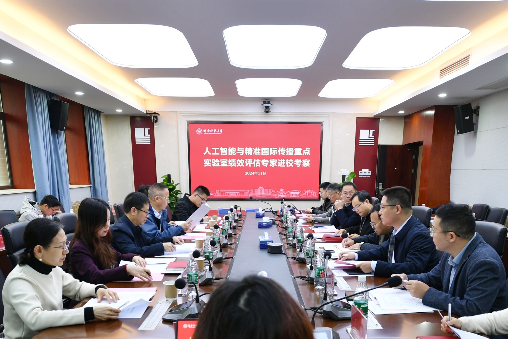 评估组长梁晓波充分肯定了实验室的科研成果与研究特色。他表示,建设人工智能与精准国际传播重点实验室意义重大,要致力于讲好中国故事湖南篇章;以问题为导向,寻找并解决实验室的重点问题;基于学校优势,建立外联机制,整合多方资源,促进成果的转化与应用,更好地服务社会。